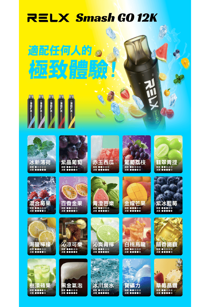 RELX悅刻電子煙一次性抛棄式Smash Go 12000口【10種風味】 RELX悅刻電子煙一次性抛棄式Smash Go 12000口【10種風味】